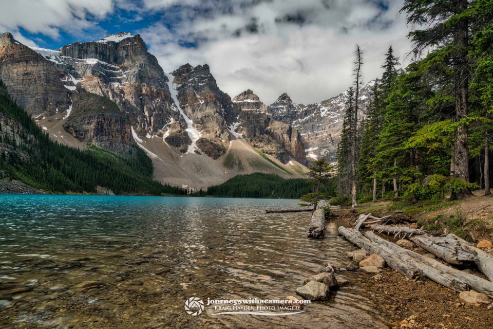 • Moraine Lake – This is adjacent to Lake Louise. Louise gets all the attention, but Moraine might be the better experience if you’re not staying at the hotel.   If you’re into photography, there is much more to see and photograph here.  Getting to Moraine requires a 7 mile drive up narrow mountain roadway.  The road is closed October through May and becomes a cross country ski trail.